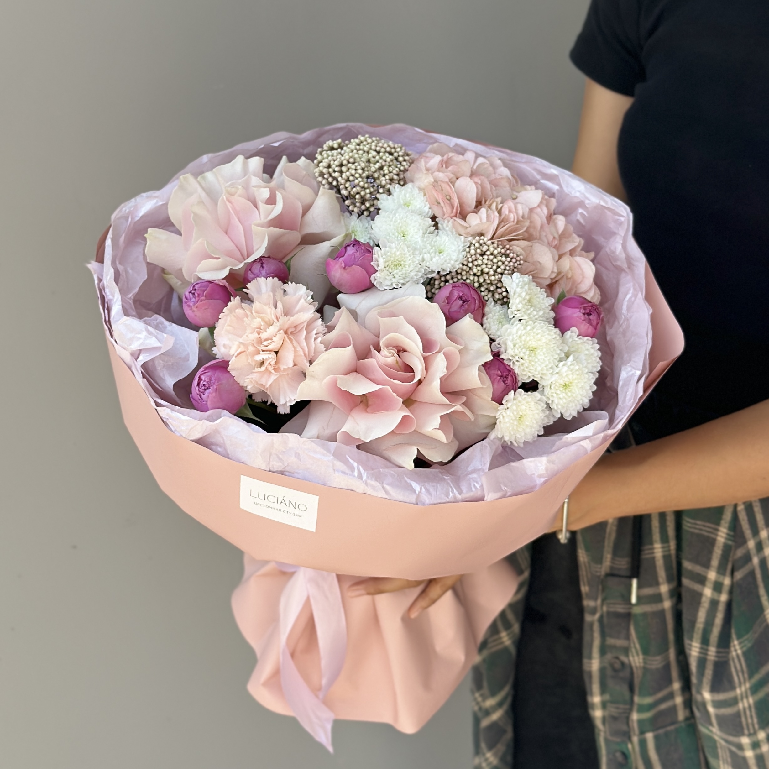 Заказать Авторский букет с хризантемой Сантини и озотамнусом с доставкой по Самаре