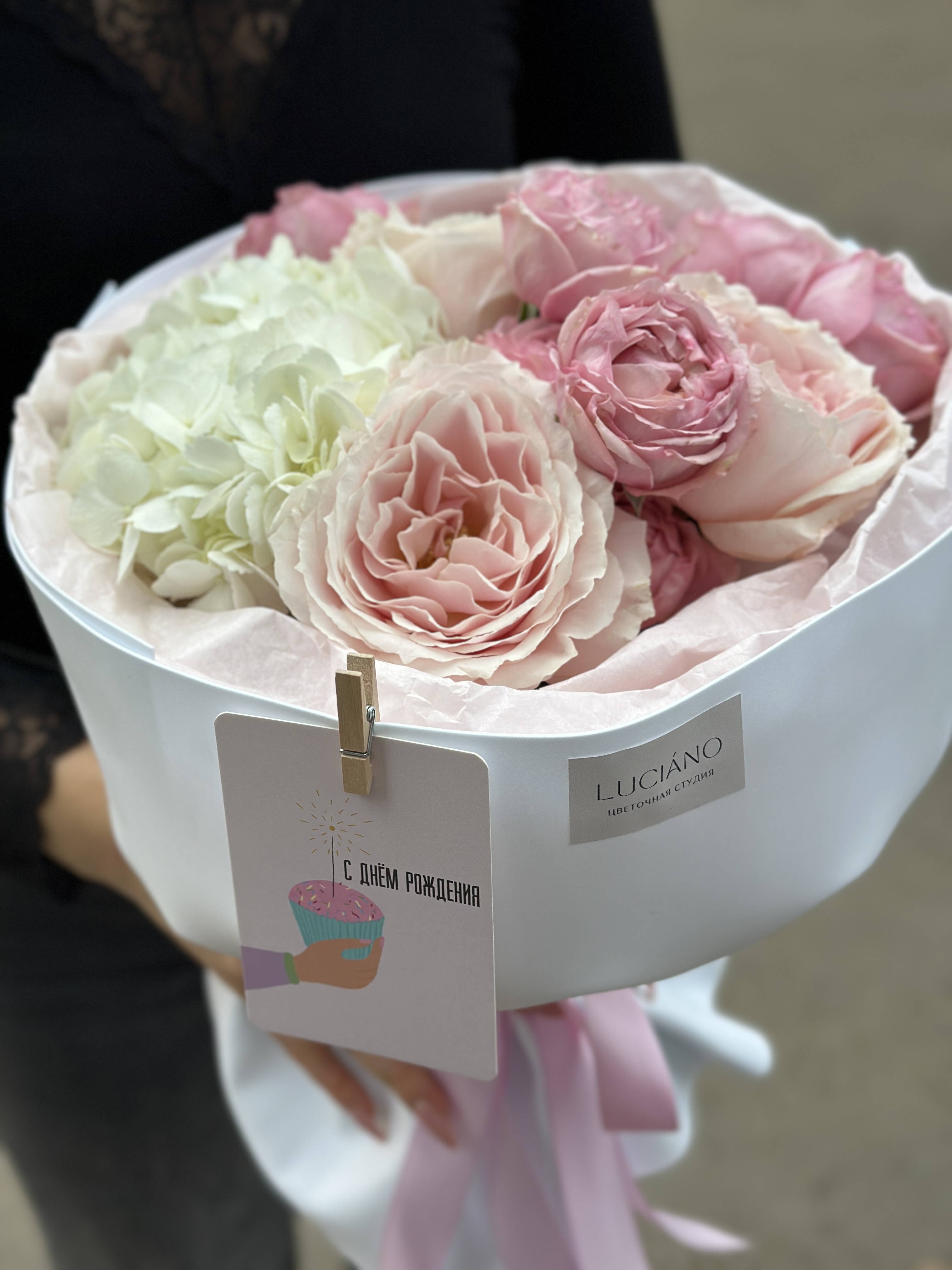 Дуо-букет из гортензий и кустовых роз