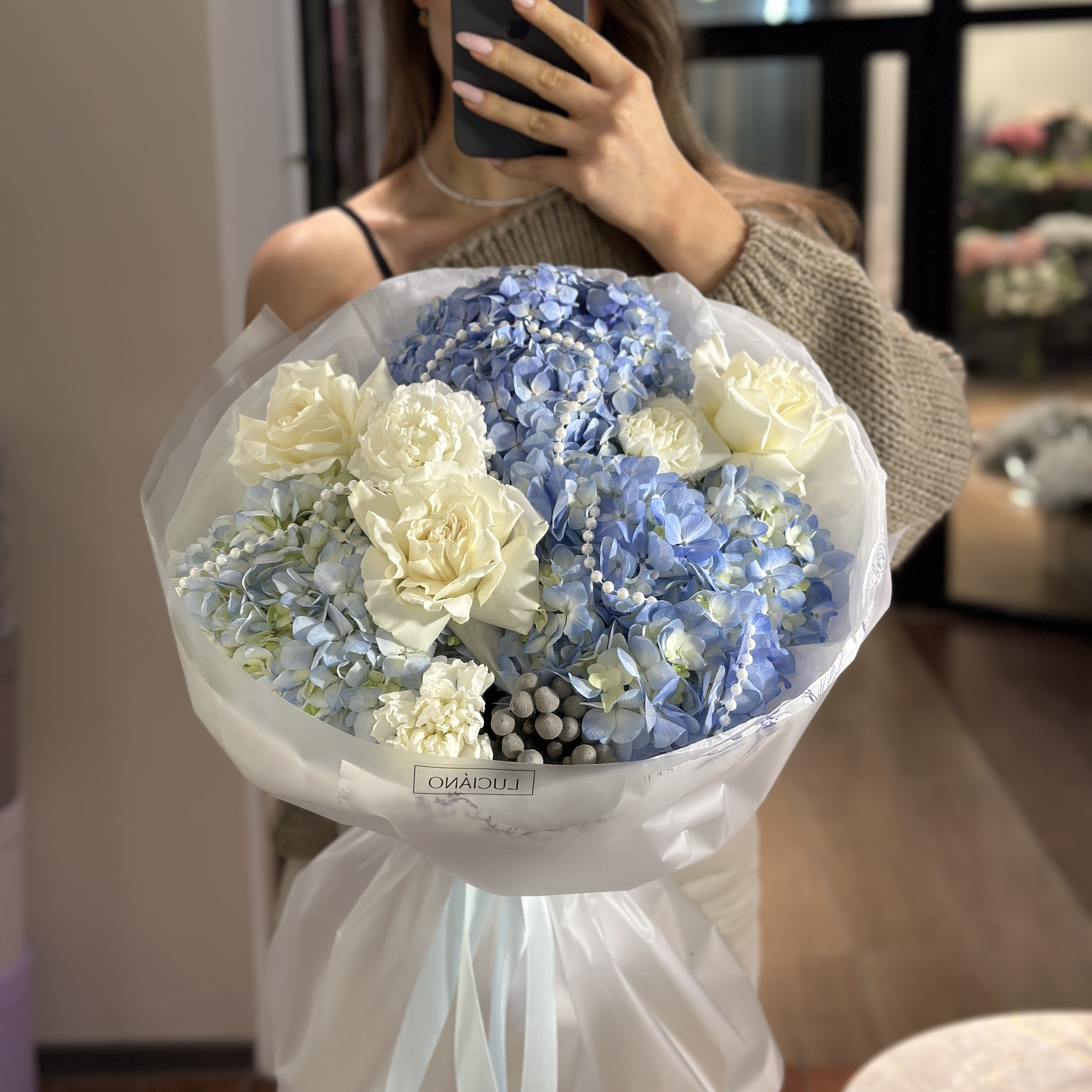 Заказать Авторский букет в голубых тонах с доставкой по Самаре