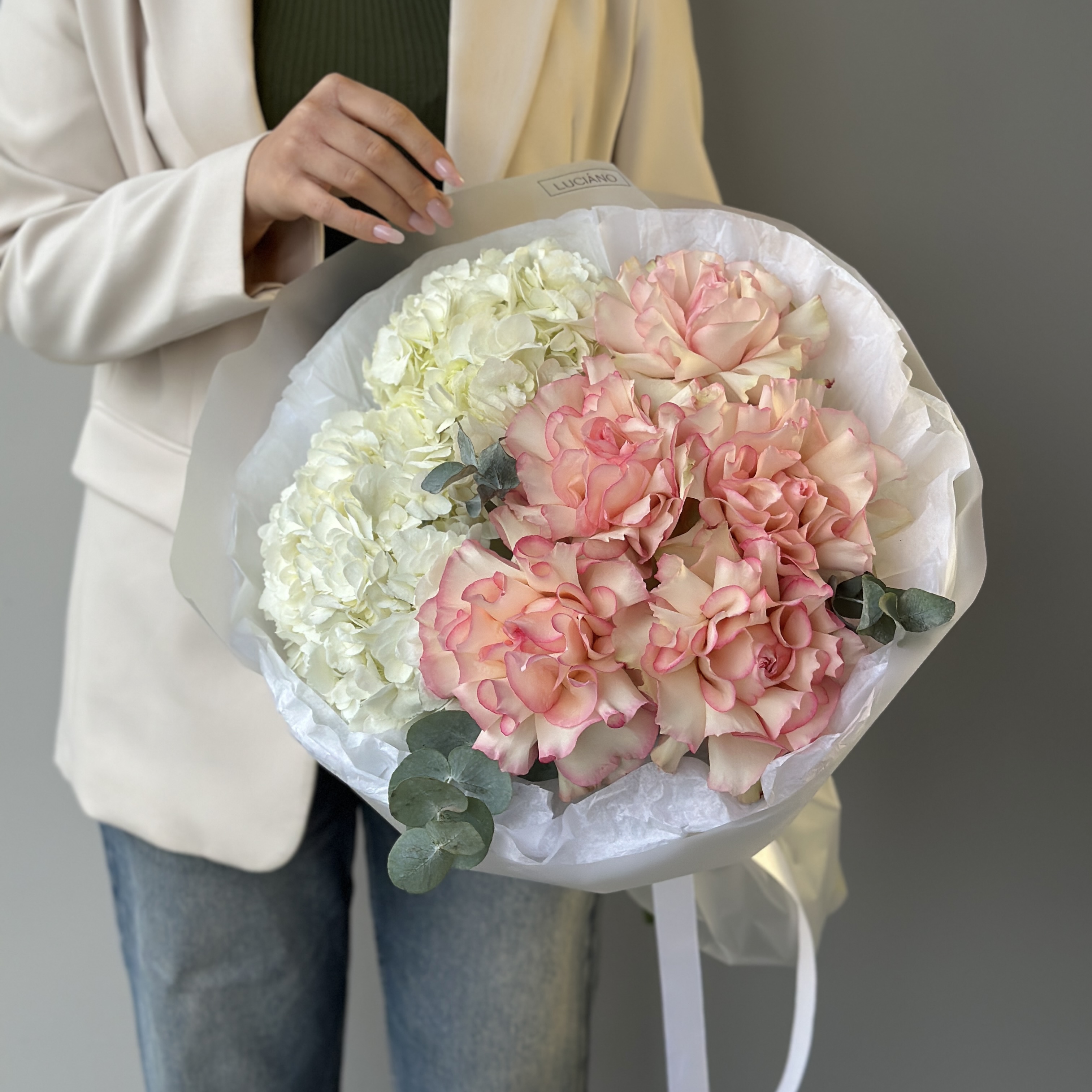Заказать Дуо из гортензий и французских роз с доставкой по Самаре