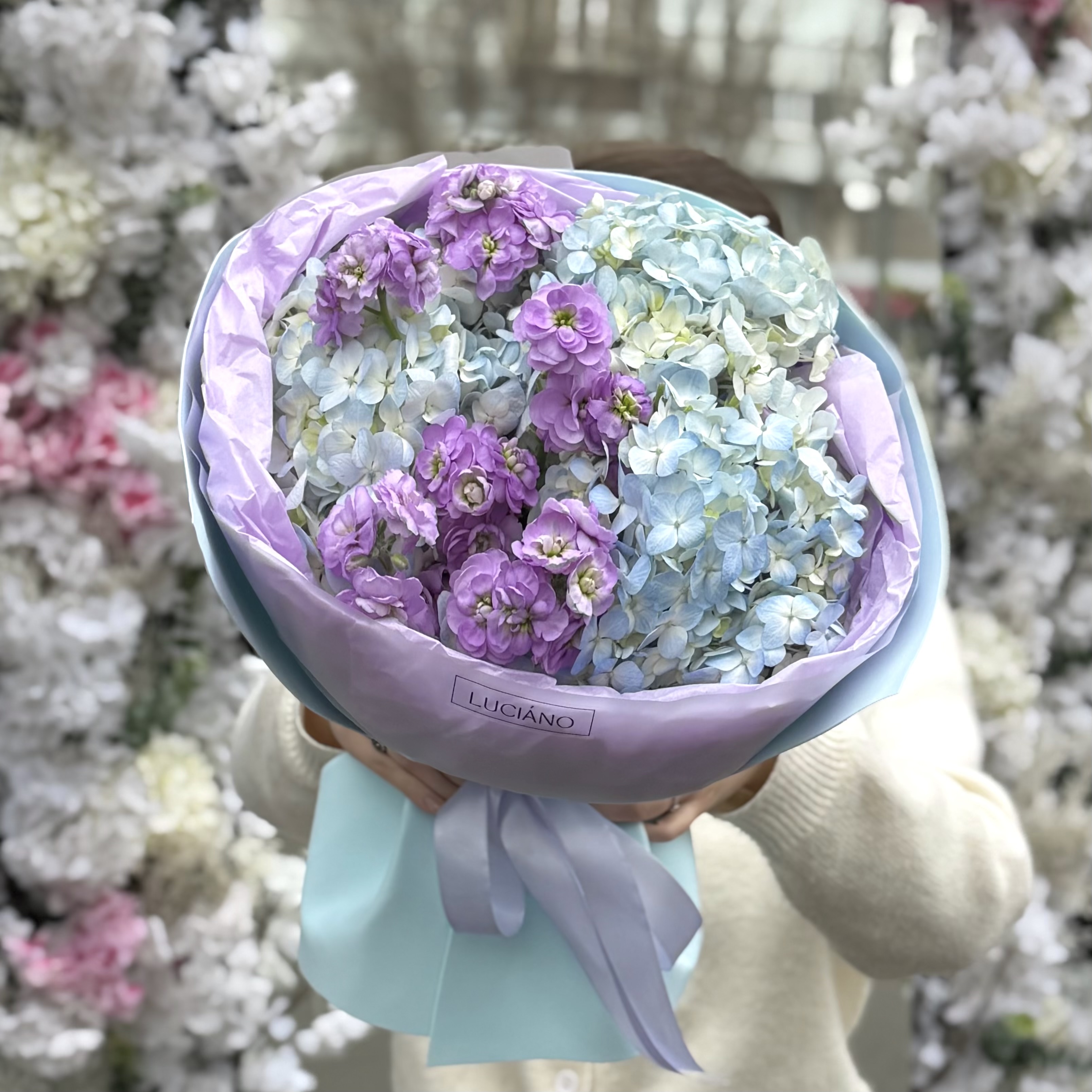 Заказать Дуо-букет из гортензий и маттиолы с доставкой по Самаре