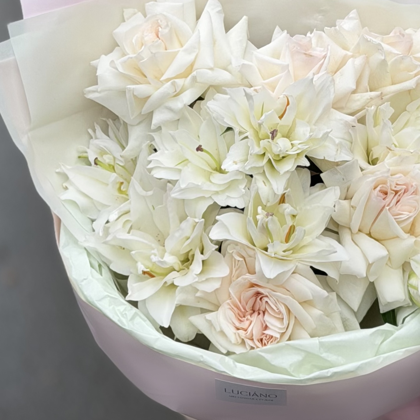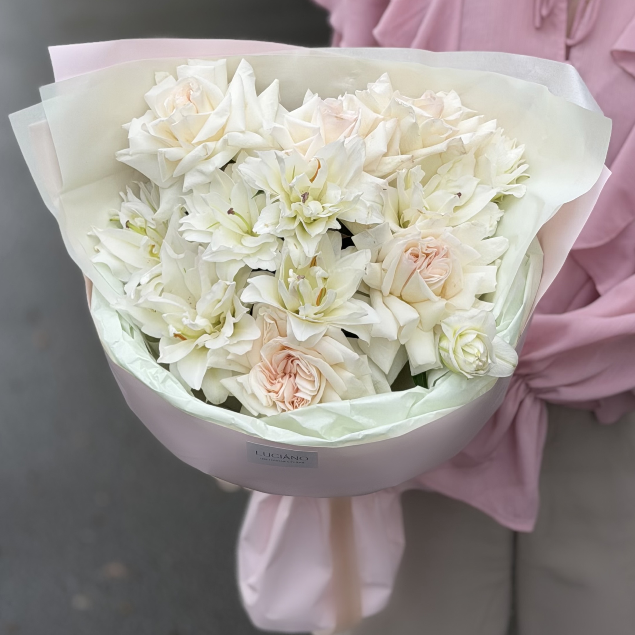 Заказать Дуо-букет из розы White O’hara и лилии с доставкой по Самаре