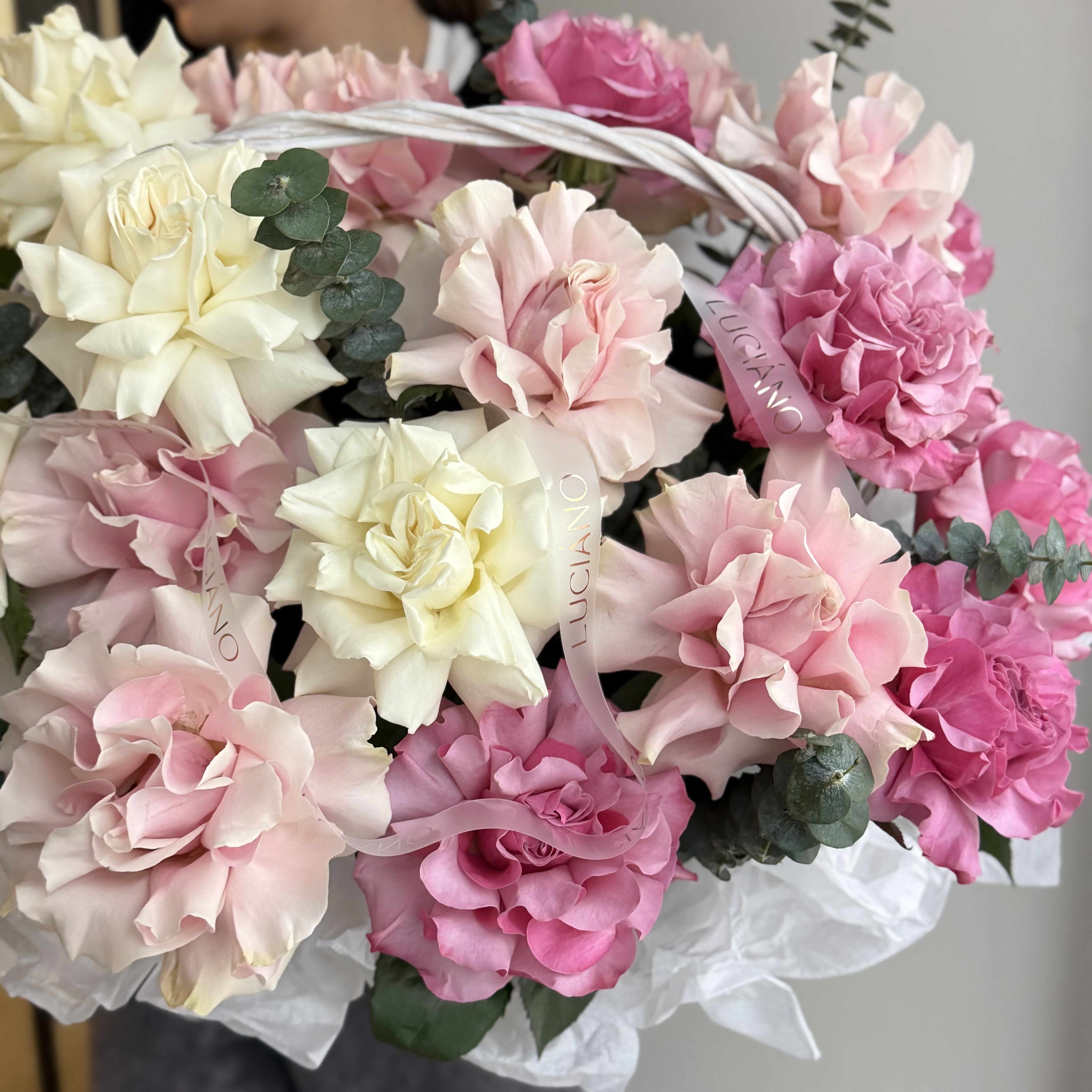 Заказать Корзина из французских роз с эвкалиптом - 21 шт с доставкой по Самаре