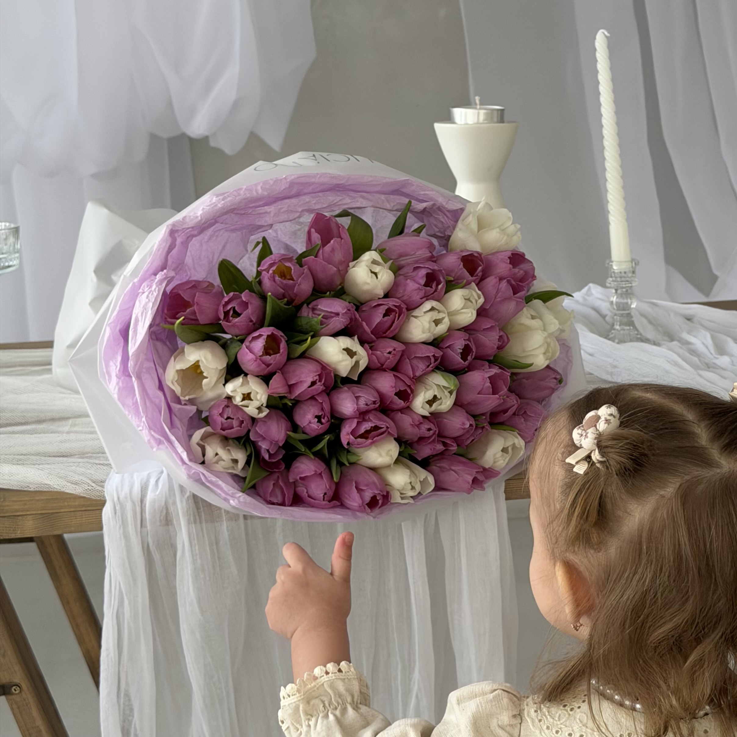 Приятное сочетание оттенков в нежном букете из тюльпанов