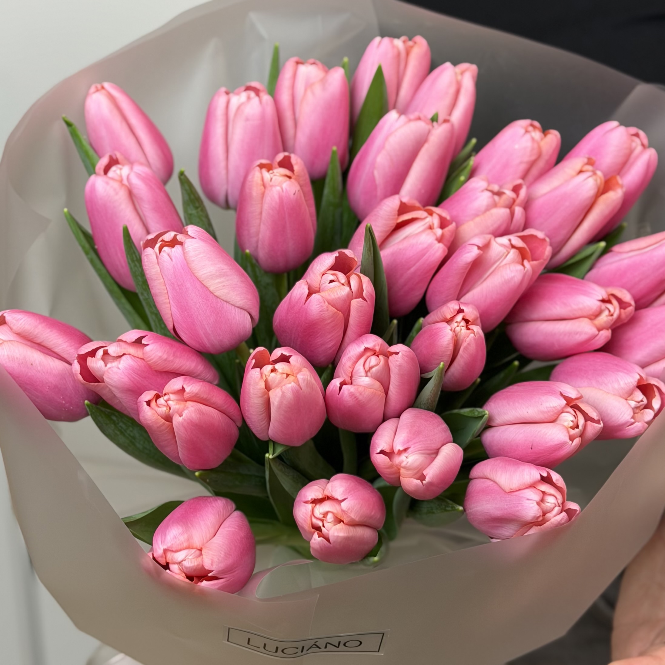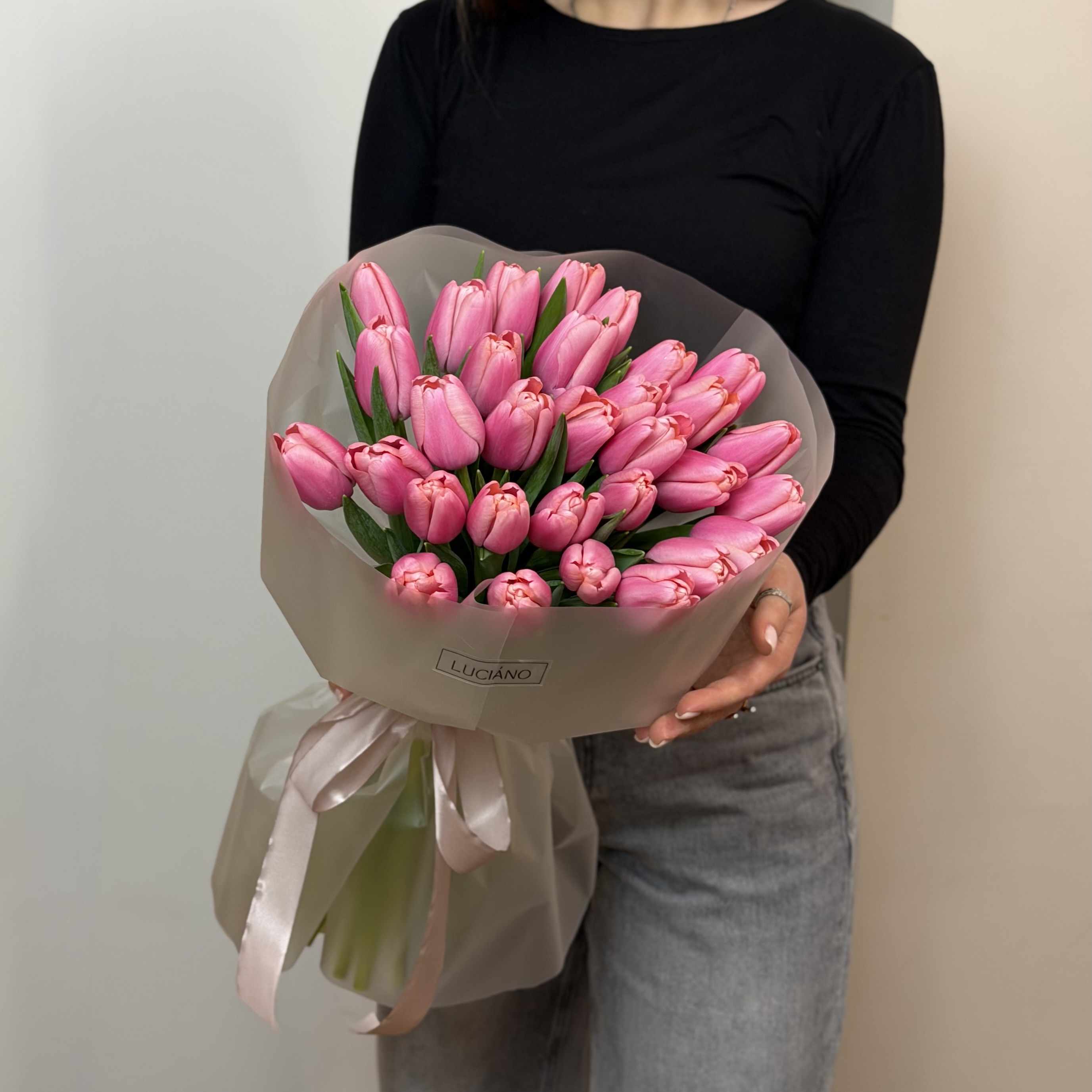 Моно-букет из розовых тюльпанов - 31 шт