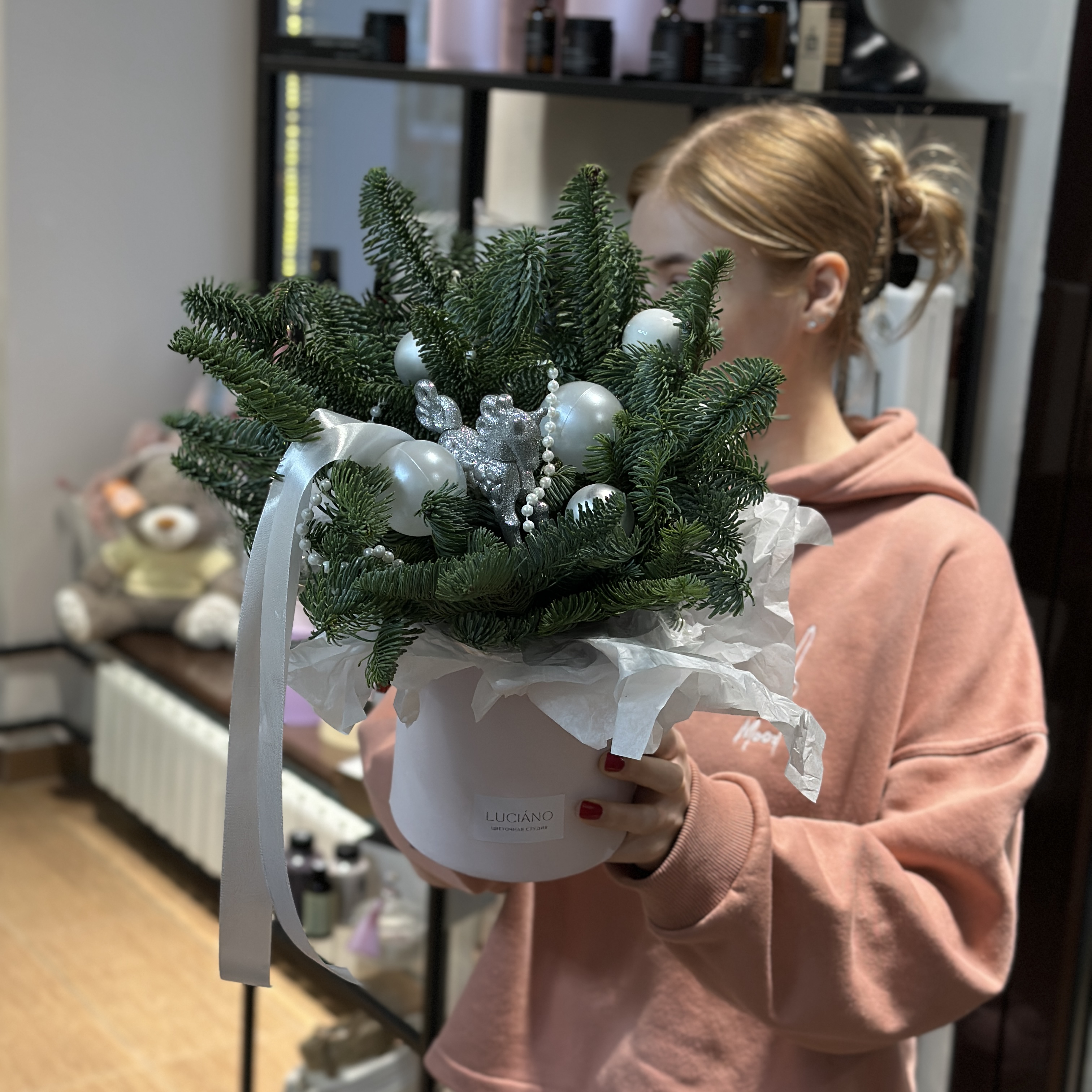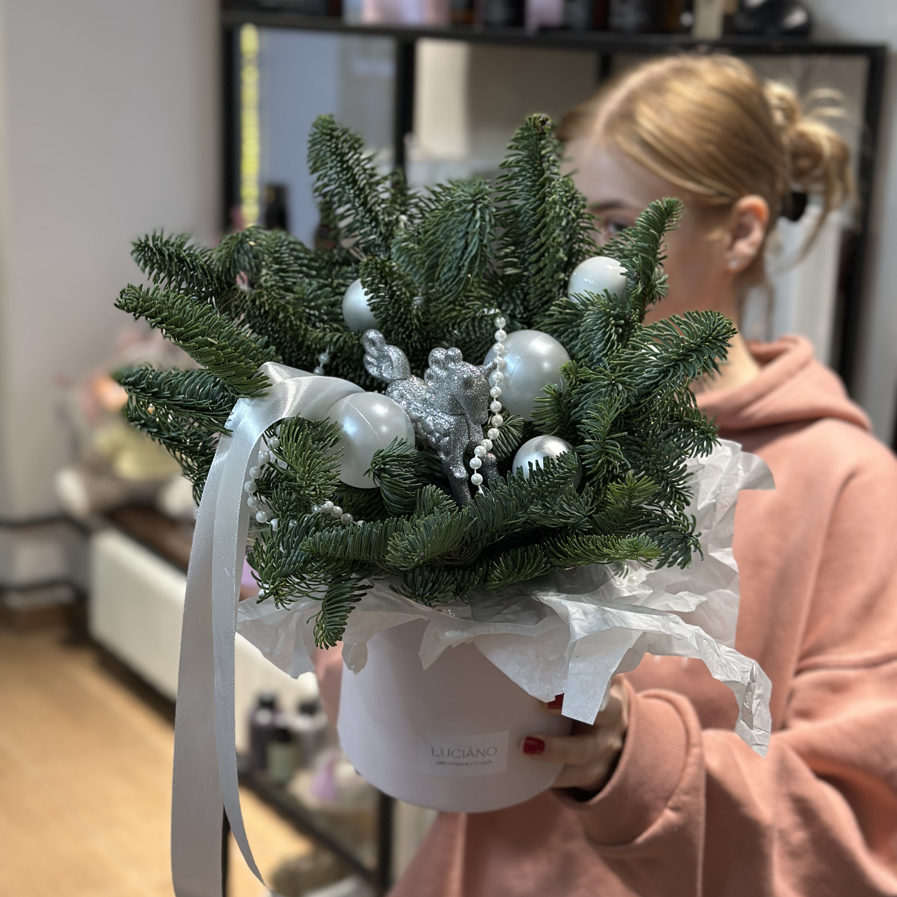 Заказать Композиция из нобилиса с серебристым декором с доставкой по Самаре