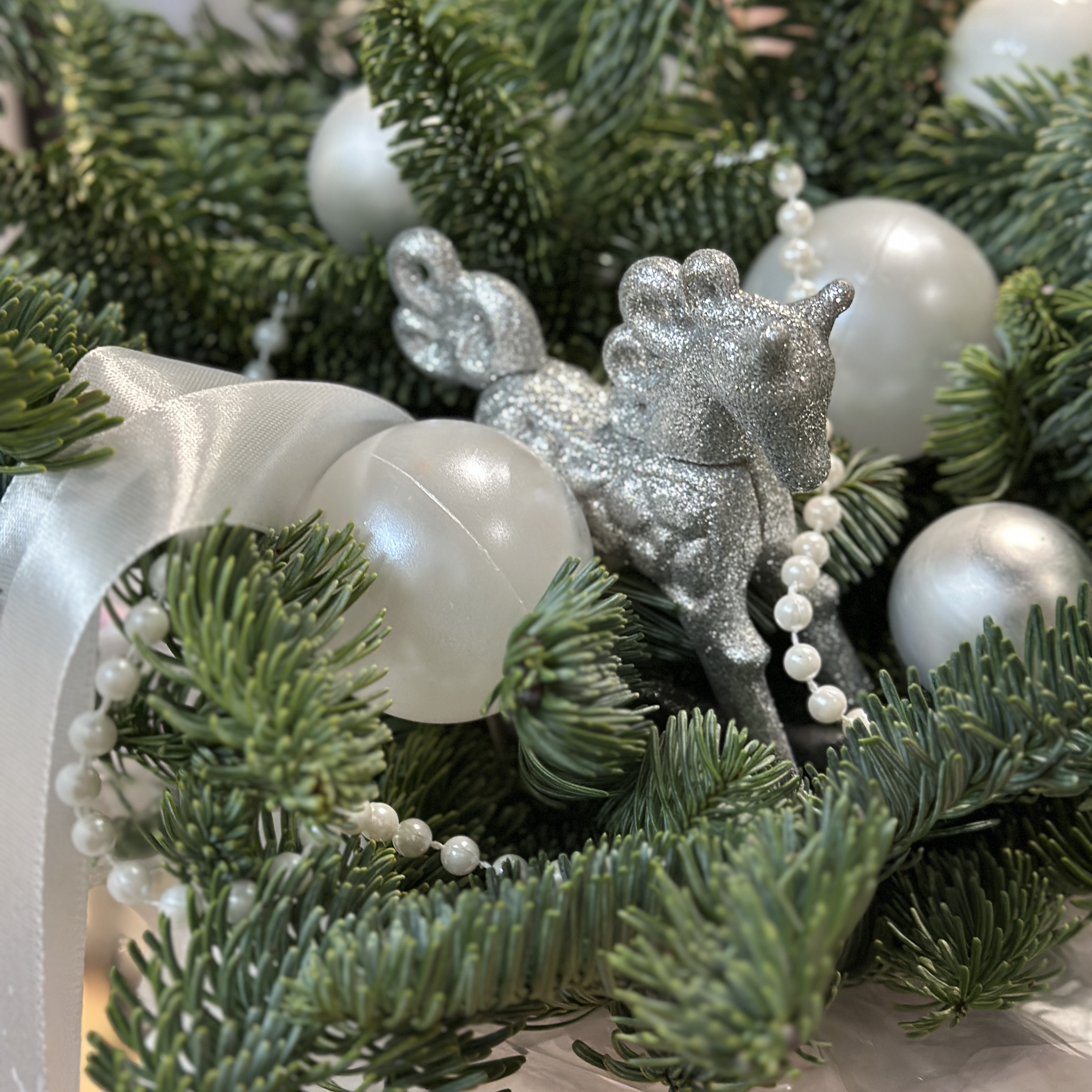 Новогодняя композиция из нобилиса с лошадкой и бусами
