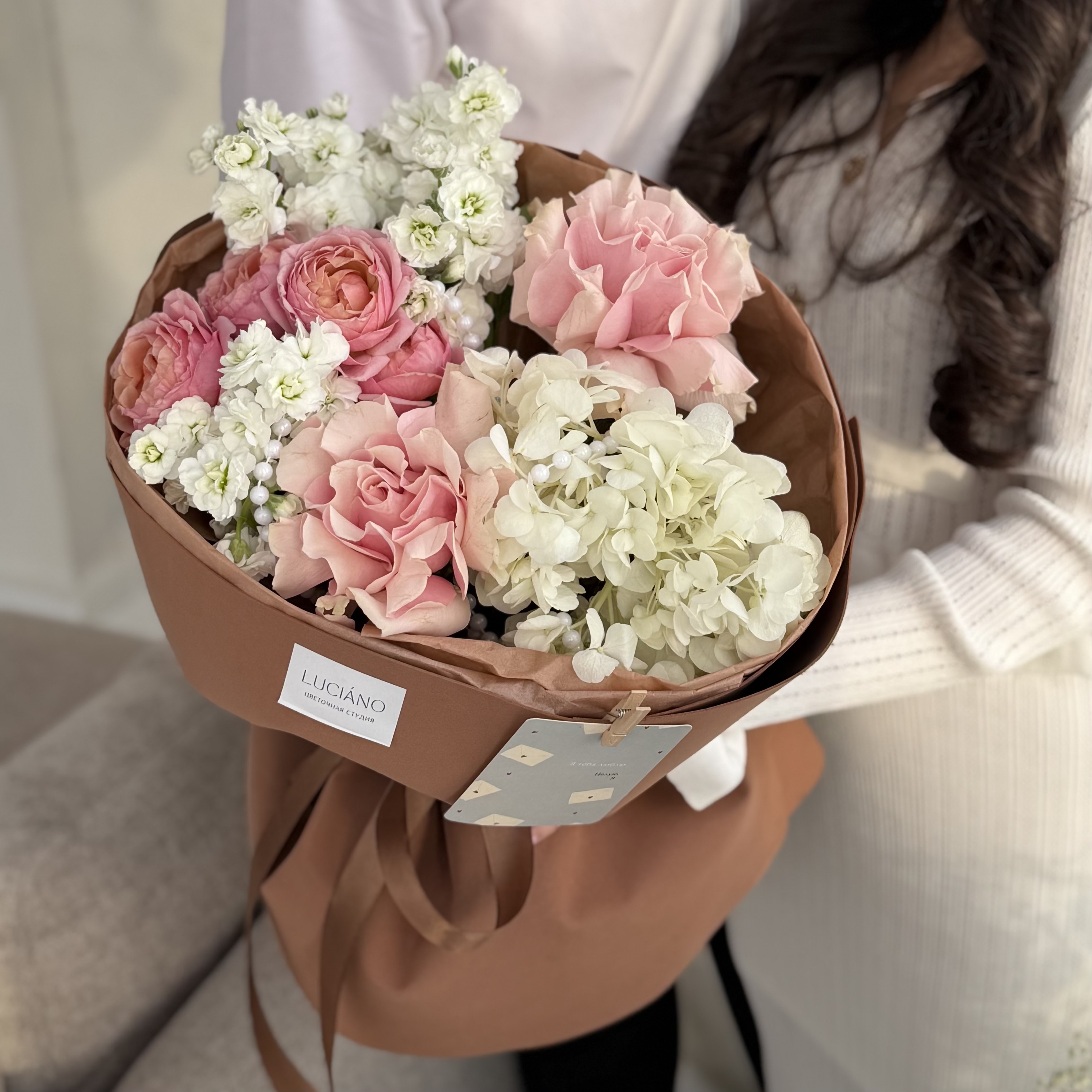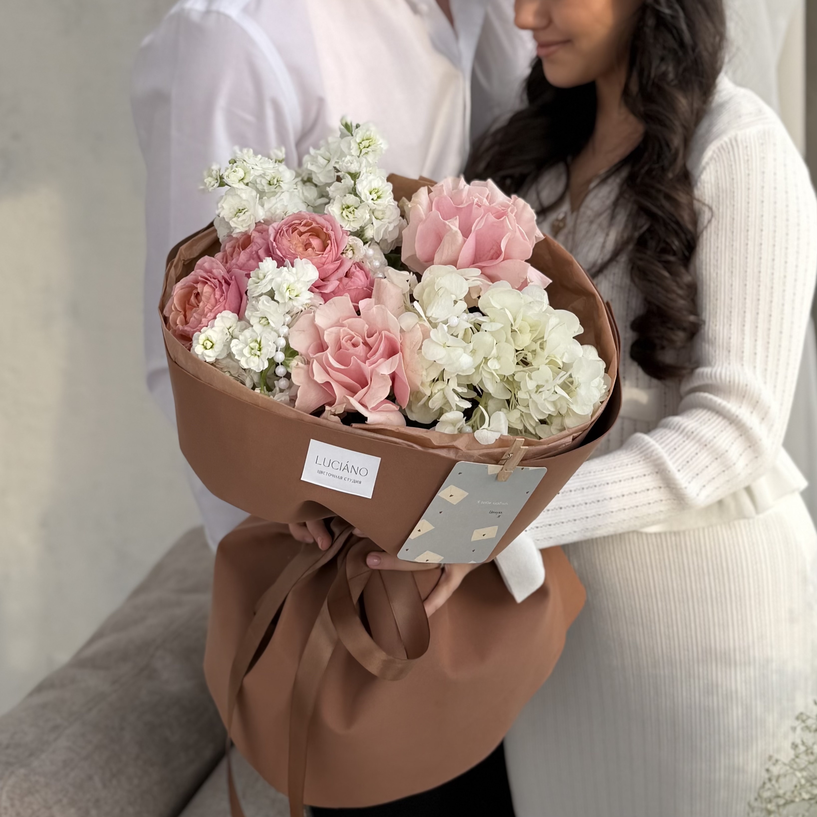 Заказать Авторский букет с кустовыми розами Juliet и маттиолой с доставкой по Самаре