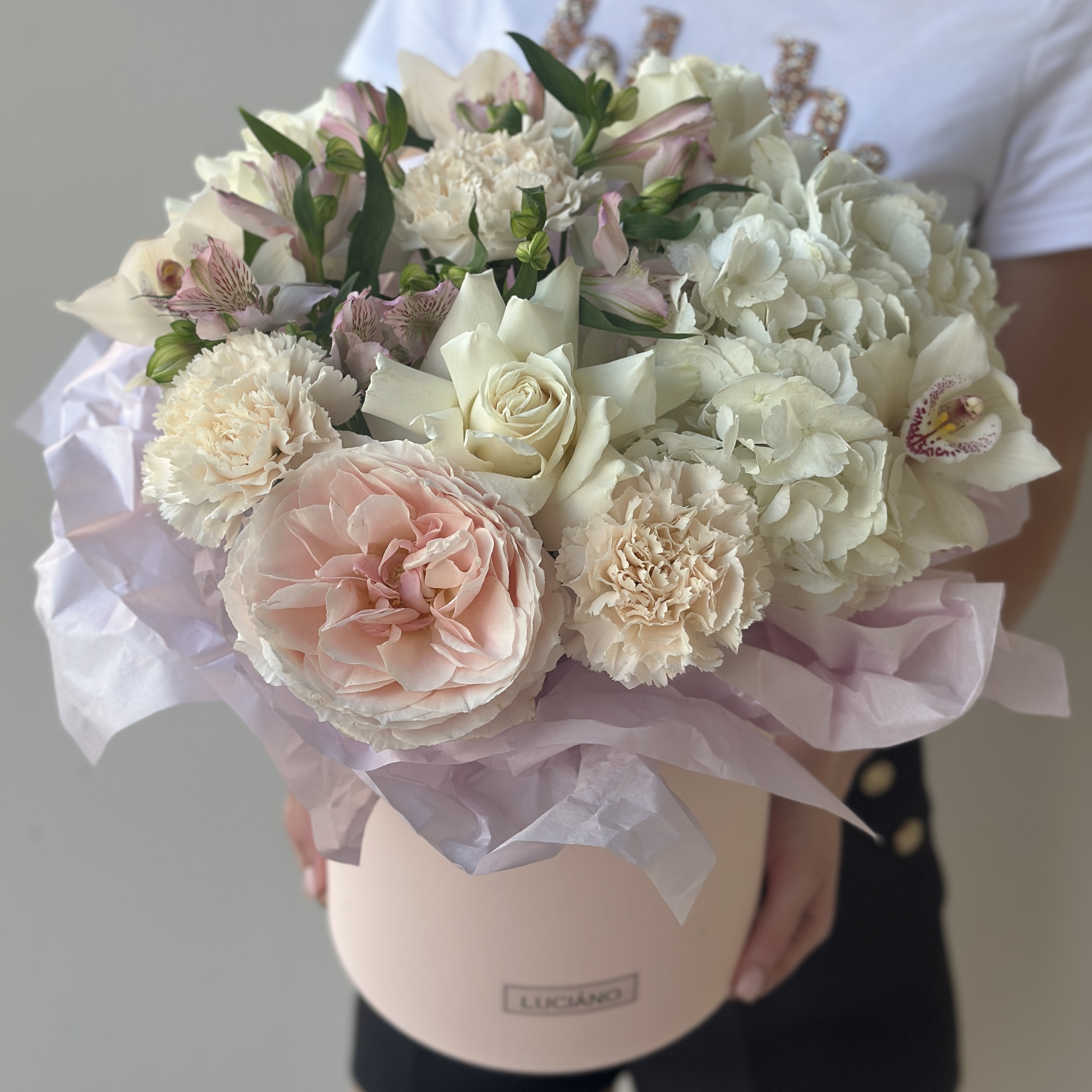 Заказать Авторская композиция с диантусами, альстромериями и пионовидными розами с доставкой по Самаре