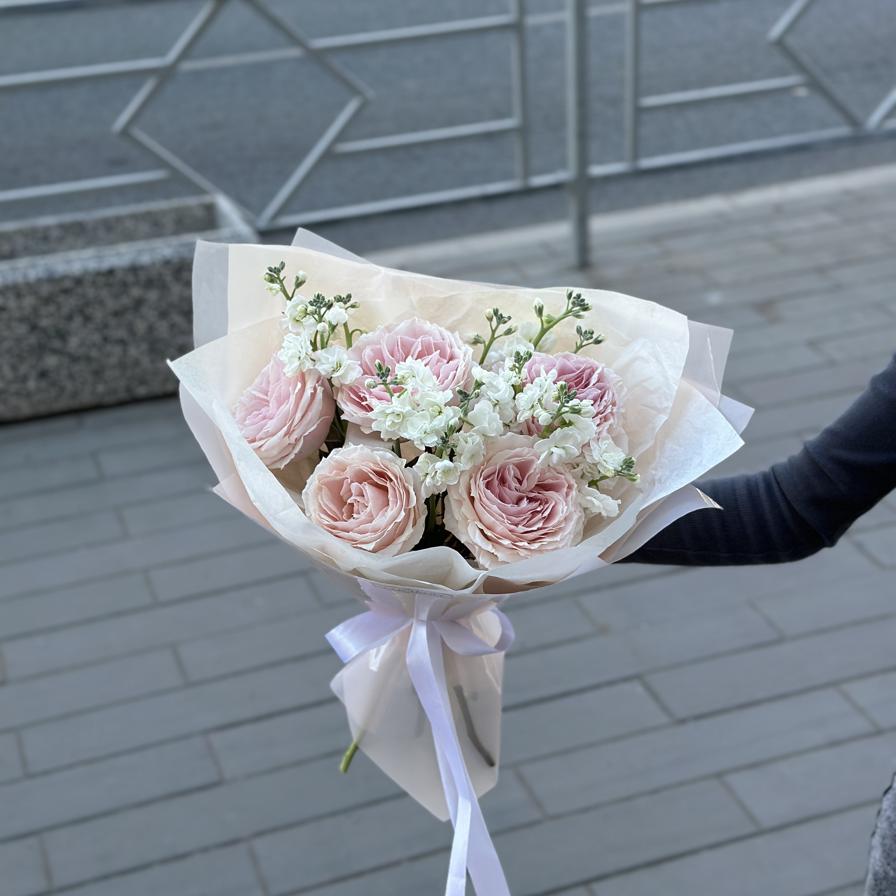 Заказать Дуо букет из пионовидных роз Tsumugi и маттиолы с доставкой по Самаре
