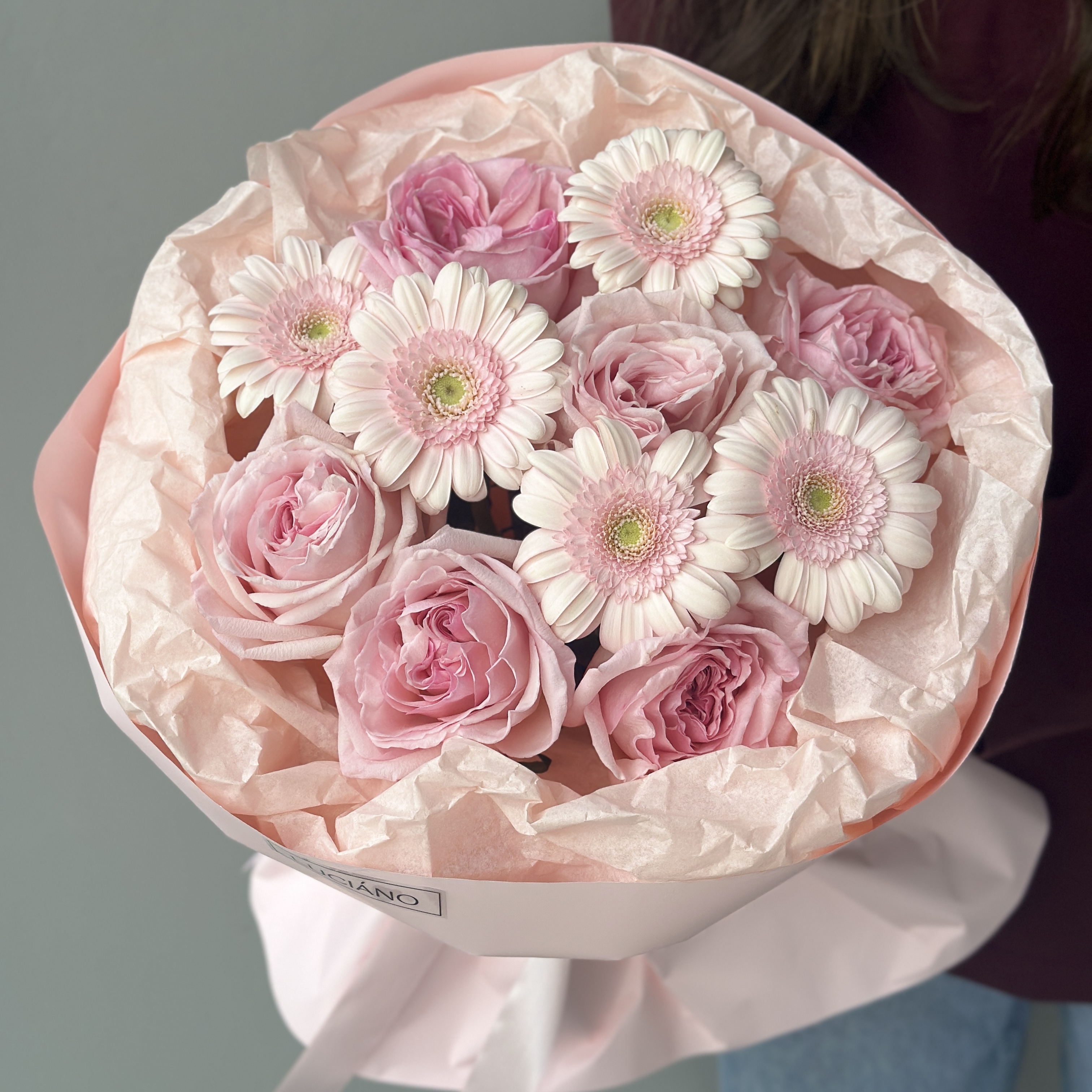 Гермини и розы Pink O’hara - самое розовое сочетание в одном букете