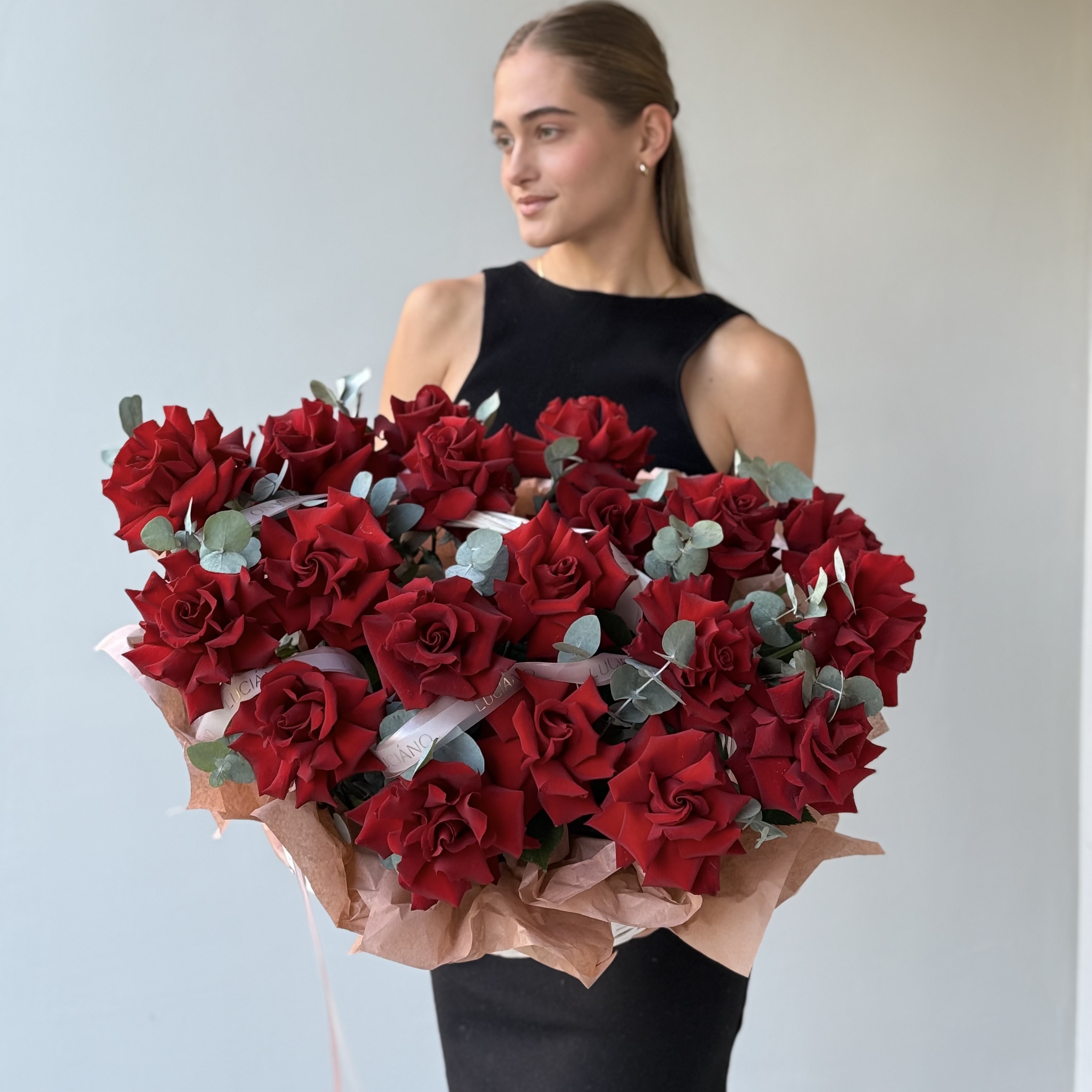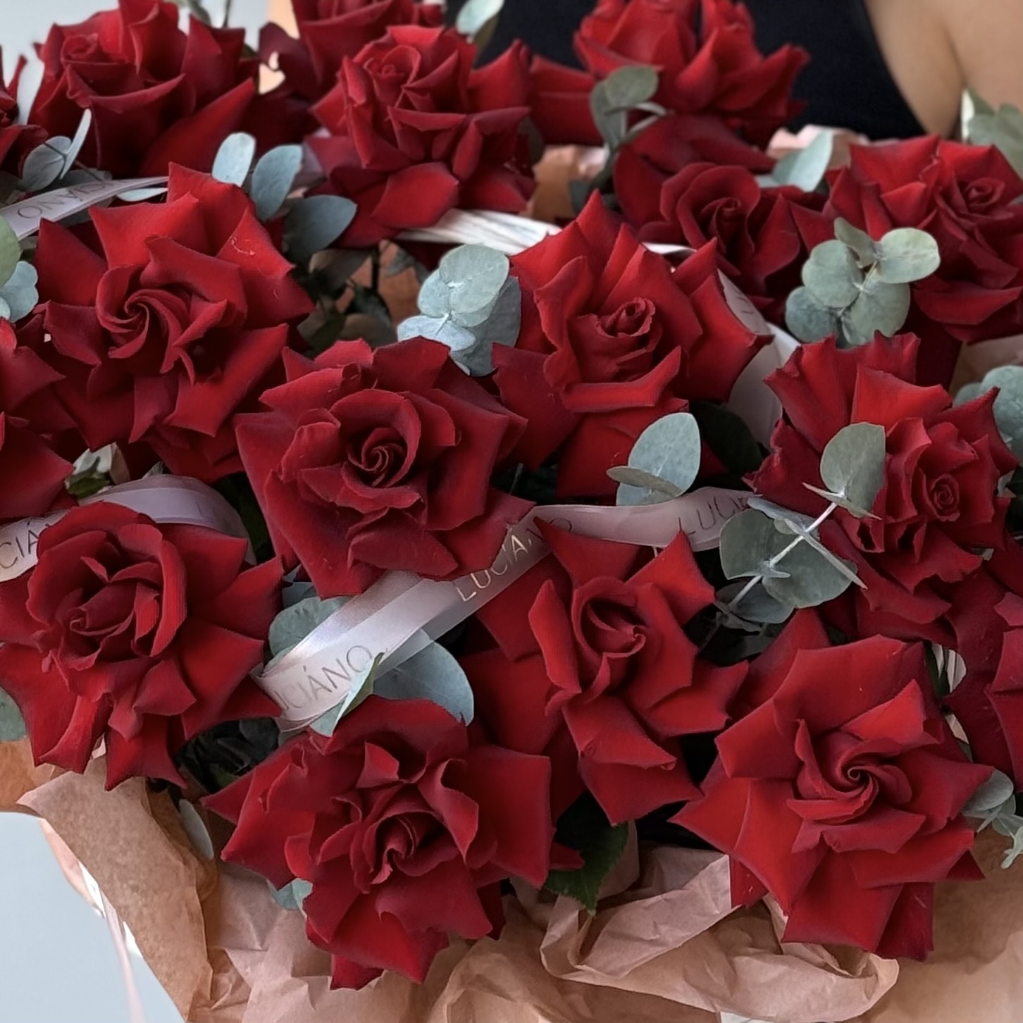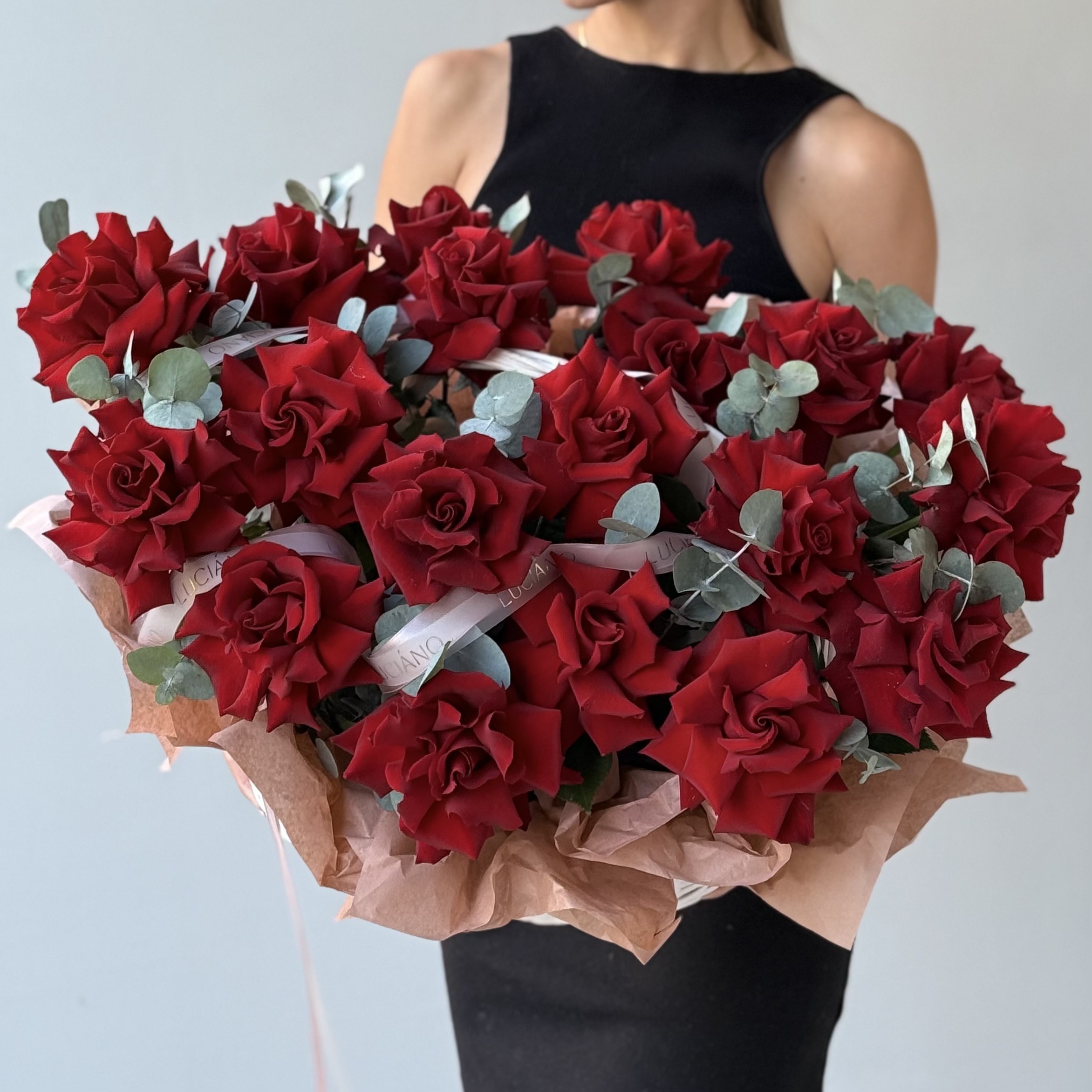 Заказать Корзина из французских роз Explorer - 25 шт и эвкалипта с доставкой по Самаре